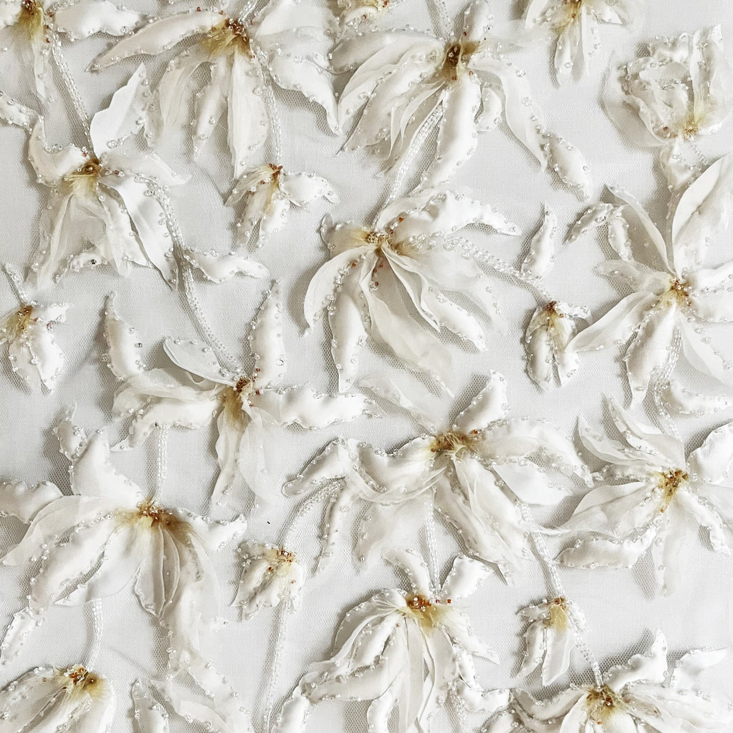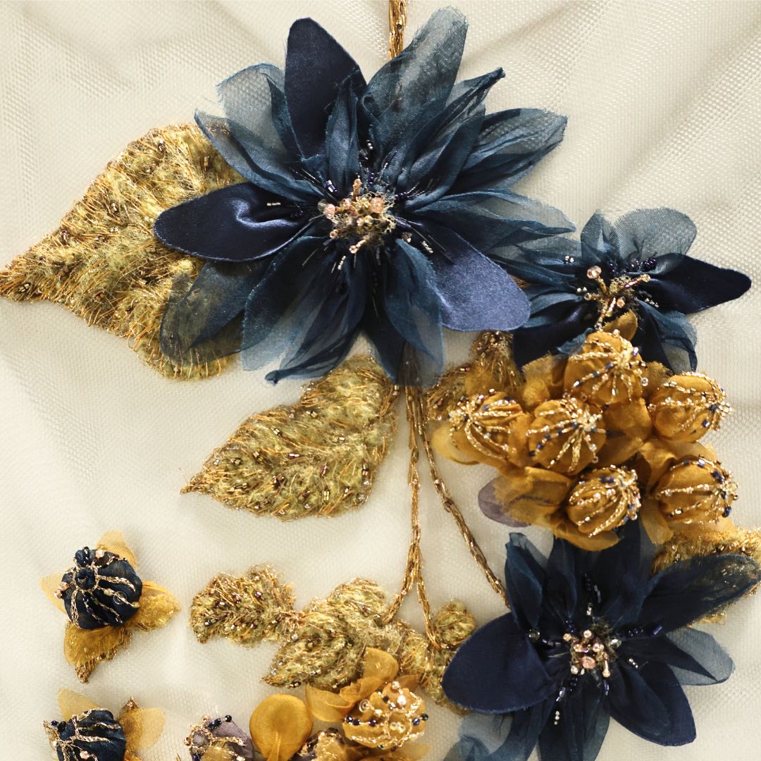 Appliques and trims elevate the visual interest of a design, and thus we are constantly brainstorming new designs. Our team has developed various insect, animal, and floral embroidery.